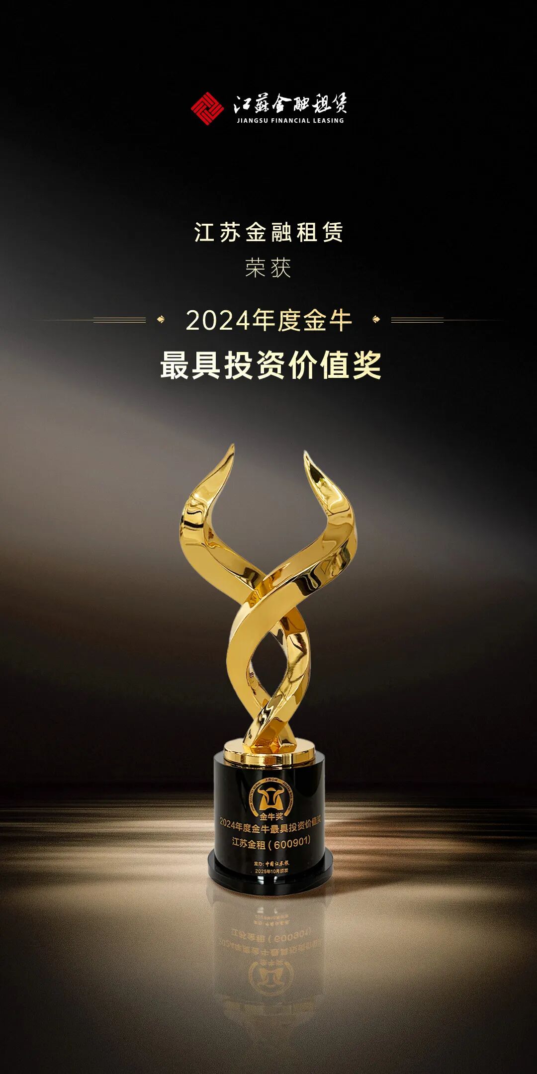 近日,由中国证券报与南通市人民政府主办的2025上市公司高质量发展论坛暨第二十七届上市公司金牛奖颁奖典礼在南通举行。江苏金融租赁股份有限公司(以下简称“江苏金租”,股票代码:600901)凭借卓越的综合实力与持续的价值创造能力,荣获“2024年度金牛最具投资价值奖”。