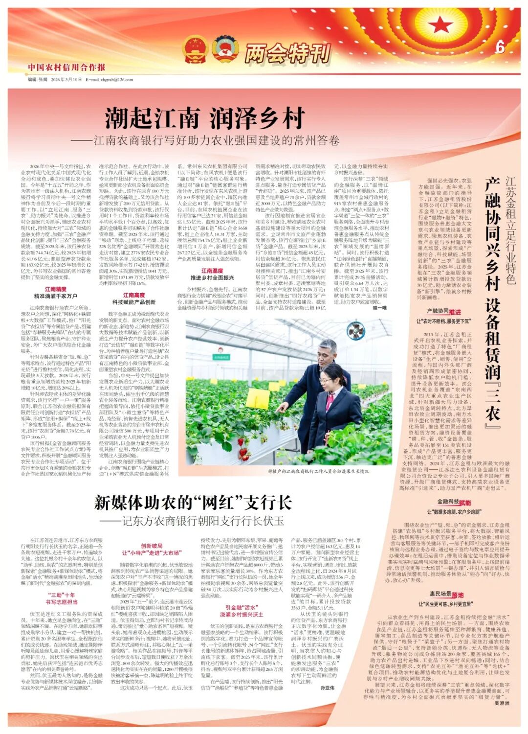强国必先强农,农强方能国强。近年来,在金融监管部门的指导下,江苏金融租赁股份有限公司(以下简称:江苏金租)立足金融租赁行业“融物+融资”特色,围绕服务普惠金融大文章与农业领域设备更新需求,聚焦农机装备、农牧产业链与乡村建设等重点场景,探索形成“产融结合、科技赋能、场景创新”的“三农”金融服务路径。2025年,江苏金租在“三农”金融服务领域累计新增投放贷款近70亿元,助力激活农业装备“新引擎”,绘就乡村振兴新画卷。