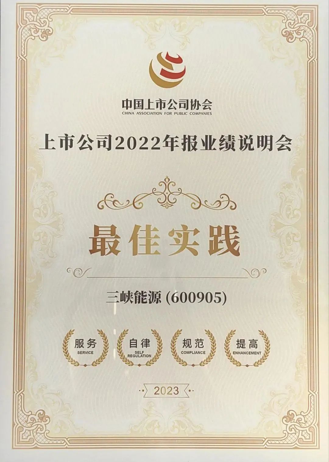 近期,三峡能源成功获评中国上市公司协会“2023年度上市公司董事会最佳实践案例”“2023上市公司董事会秘书履职5A评级”“上市公司年报业绩说明会最佳实践”“上市公司董办最佳实践案例”四项荣誉。