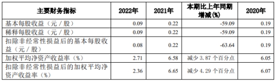 2022年,财达证券基本每股收益0.09元/股,比上年同期减少59.09%;加权平均净资产收益率2.71%,较上年同期减少3.87个百分点。