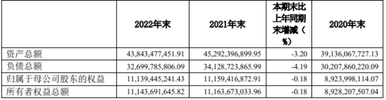 截至2022年末,财达证券资产总额438.43亿元,同比减少3.20%;负债总额327.00亿元,同比减少4.19%;资产负债率为64.52%,较上年同期下降1.2个百分点。