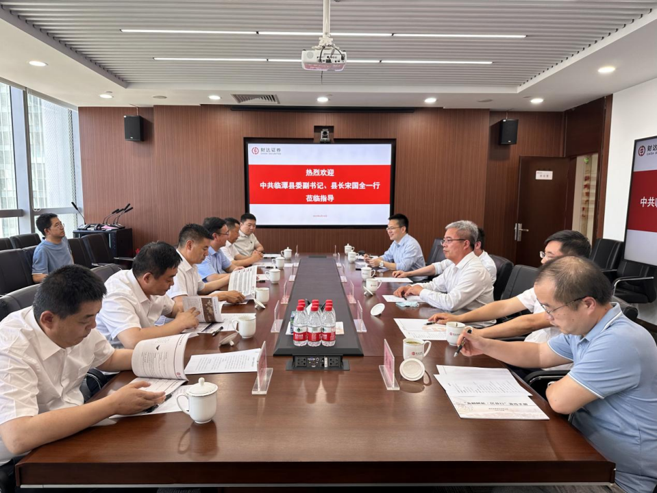 6月15日,临潭县委副书记、县长宋国全一行到公司座谈交流,财达证券投资银行业务委员会、财达资本出席座谈。临潭县政府办公室主任党元昌、临潭县发改局局长殷志贤、临潭县商务局局长刘宏伟、临潭县投资与合作交流局局长张建宁等陪同座谈。
