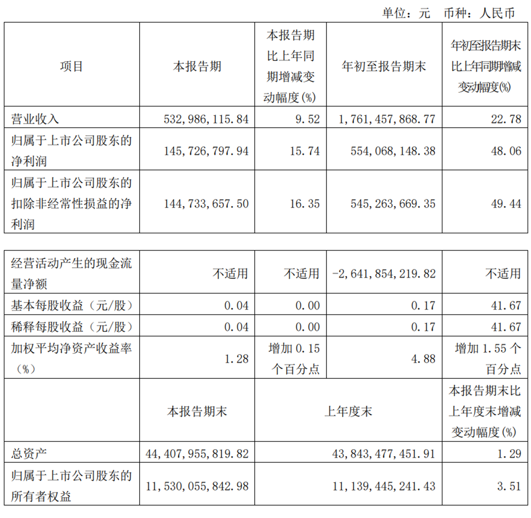 其中第三季度,财达证券实现营业收入5.33亿元,同比增长9.52%;归属于上市公司股东的净利润1.46亿元,同比增长15.74%;归属于上市公司股东的扣除非经常性损益的净利润1.45亿元,同比增长16.35%。