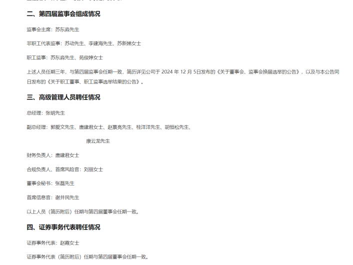 面对这样的背景,新的高管团队肩负着改善公司业绩的重任。分析人士指出,新任董事长张明的上任可能会带来一系列战略调整和改革措施。张明此前已在公司内部有着丰富的工作经验,深知企业运营的各个环节,这有助于他快速把握公司现状并针对性地进行策略调整。同时,刘丽作为新任的合规负责人和首席风险官,她的专业知识和经验对于加强公司的合规风控体系尤为重要。