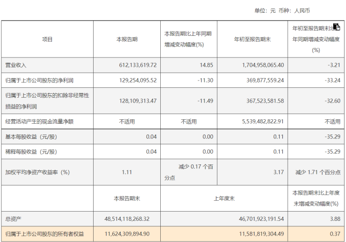 相关公告显示,2024年前三季度,财达证券实现营业收入17.05亿元,同比下降3.21%;同期归属于上市公司股东的扣非前和扣非后净利润分别为3.7亿元和3.68亿元,同比分别下降33.24%和32.6%。