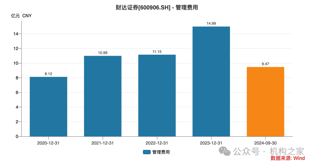 在营业支出方面,2023年公司业务及管理费为14.99亿元,较2022年增长34.40%,主要原因是职工费用及宣传广告费用增加。由于营业收入的增幅更大,使得营业费用率较2022年下降3.16个百分点至64.70%,处于较为合理区间。
