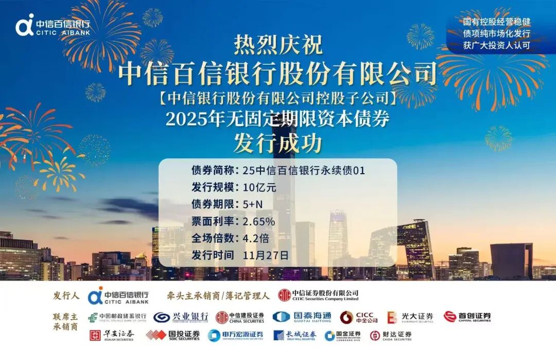 投行委积极探索特色化、差异化服务路径,通过强化业务协同与资源整合,成功助力国内首家国有控股数字银行——中信百信银行股份有限公司发行10亿元无固定期限资本债券“25中信百信银行永续债01”。该笔债券的顺利落地,不仅有效帮助发行主体补充资本金、优化负债结构,更深化了财达证券与领先数字金融机构的战略合作,为后续拓展数字银行金融债承销业务筑牢坚实根基,标志着公司在数字银行金融债券领域实现关键性突破。