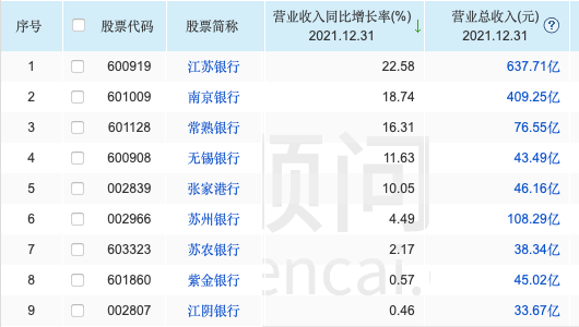 营收江苏倒数,净息差行业倒数