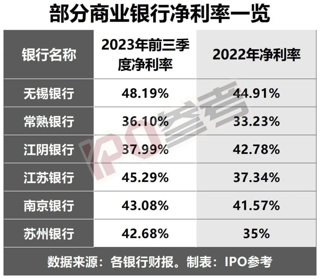 其实,无锡银行净利润的大幅提升得益于净利率的大幅提升。2023年前三季度无锡银行的净利率为48.19%,而上一年同期其净利率为41.95%,同比提升了6.24个百分点。此前2020年同期的净利率为35.05%,2021年同期的净利率为37.90%,近4年前三季度,无锡银行的净利率呈稳步提升趋势,4年同期提升了13.14个百分点。