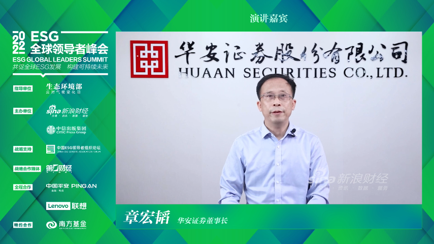 华安证券董事长章宏韬在“证券公司在ESG生态中的重要作用”环节发表主旨演讲。