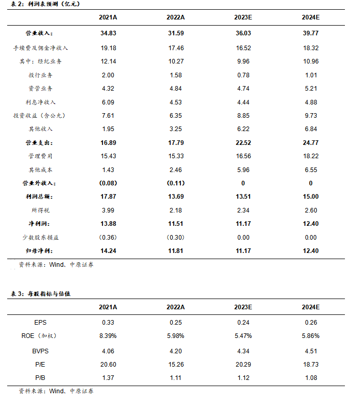 投资建议:报告期内公司机构客户业务保持增长,经纪业务手续费净收入降幅优于行业;资管业务整体已排名行业前列;固收自营把握市场机会获得超额收益,推动投资收益(含公允价值变动)同比高增。报告期内公司净利虽有小幅回落,但近年来业绩稳定性已领先中小券商。预计公司2023、2024年EPS分别为0.24元、0.26元,BVPS分别为4.34元、4.51元,按9月7日收盘价4.87元计算,对应P/B分别为1.12倍、1.08倍,维持“增持”的投资评级。
