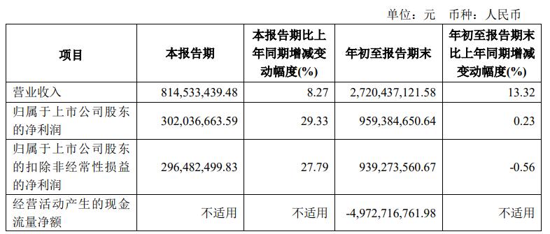 其中,今年第三季度,华安证券实现营业收入8.15亿元,同比增长8.27%;归属于上市公司股东的净利润3.02亿元,同比增长29.33%;归属于上市公司股东的扣除非经常性损益的净利润2.96亿元,同比增长27.79%。