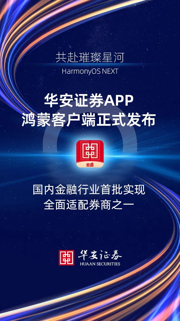 赋能未来,共创鸿蒙生态。华安证券将持续深耕金融科技领域,探索鸿蒙系统下更多创新应用场景,持续丰富鸿蒙客户端功能,为客户提供更加优质的证券服务。同时,华安证券将继续致力于推动证券行业的数字化转型,持续开展金融科技创新,与证券行业一同迈向更高效、更智能的未来。