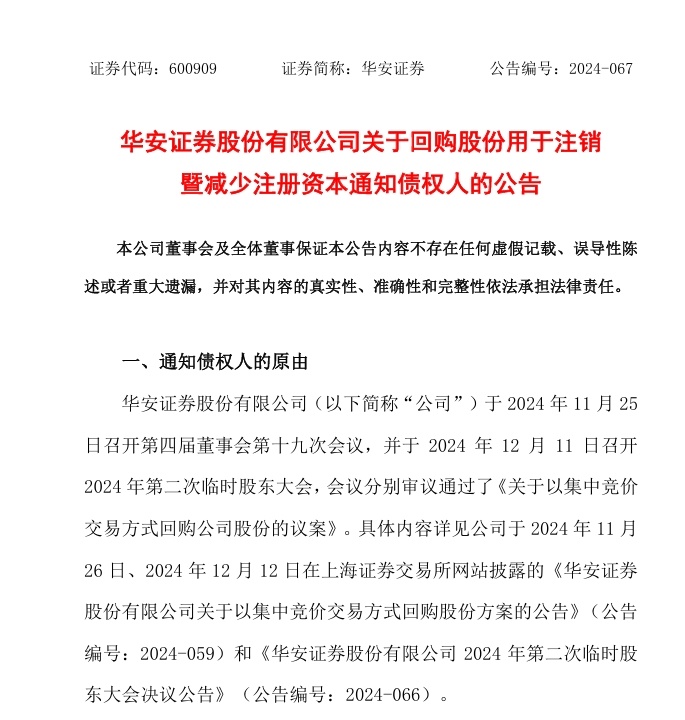 进一步来讲,根据本次股份回购方案,华安证券拟使用自有资金通过上交所交易系统以集中竞价方式回购公司发行的人民币普通股A股,回购的股份将全部用于注销并减少注册资本。