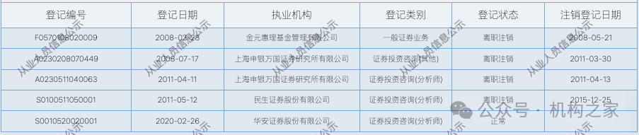 根据证券从业人员公示系统,尹沿技2008年2月在金元惠理基金开启金融从业生涯,同年7月加入上海申银万国证券研究所,2011年5月跳槽至民生证券,2020年2月加入华安证券并掌舵研究所。
