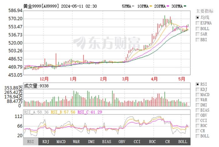 缓慢上行的黄金价格在2024年一季度突然按下加速键,海内外金价双双起飞,不断刷新历史纪录,沪金价格在4月中旬摸高到近580元/克。