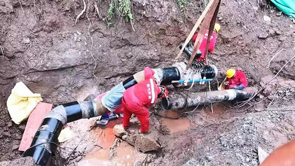 因强降雨天气影响,北碚区施家梁镇、东阳街道、复兴街道等多地相继发生山体滑坡、塌方,导致燃气管道受损,引发燃气泄漏6余处,管道裸露27处,415户居民供气中断。在持续的强降雨中,为最大限度保障受损管道及周边的安全,北碚分公司高效实施应急处置“三步走”:首先对损坏泄漏的管道果断采取切断气源,有效杜绝燃气次生灾害的发生;同时在损坏的管道部位进行临时性封堵,提前恢复对评估安全的区域的临时供气;第三步对局部受损严重的管道采取施工迁改,重新规划安全可靠的管道路由,尽快恢复受影响客户的供气。目前,具备恢复条件的居民已全部实现供气,消除了暴雨造成的安全隐患。