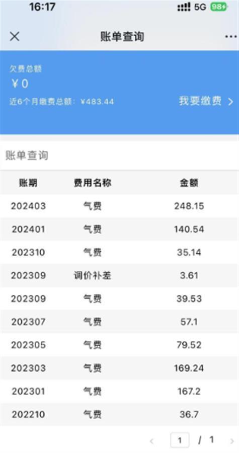 重庆市民发布的燃气费缴纳记录(图源:网络)