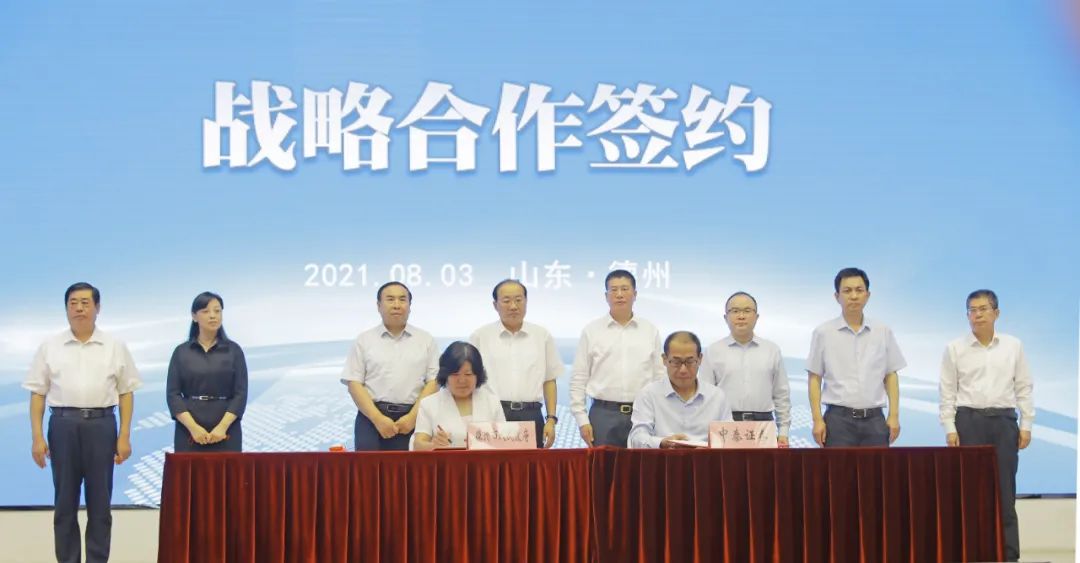8月3日,中泰证券与德州市人民政府战略合作协议签约仪式暨齐鲁股权交易中心2021年德州企业第一次集中挂牌仪式在德州中元科技创新创业园举行。中泰证券党委书记、董事长李峰,德州市委书记田卫东出席仪式并分别致辞,德州市委副书记、市长杨洪涛主持会议。中泰证券党委常委吕祥友与德州市副市长马俊昀代表双方签署战略合作协议。