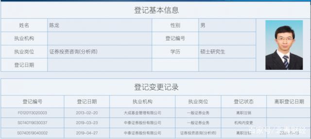 中泰证券方面回应称,陈龙已于去年11月12日从公司离职,公司对网传陈龙相关信息不知情。中证协网站显示,中泰证券研究所原首席策略分析师陈龙已于2021年11月15日从中泰证券离职注销,此后没有在任何证券公司任职。而中泰策略的公众号“修炼投资的水晶球”上显示,陈龙在2021年11月10日之后,就再没有发表过研报。