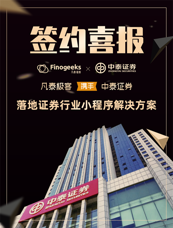 近日,市场领先的小程序解决方案提供商深圳凡泰极客科技有限责任公司(简称“凡泰极客”)与中泰证券股份有限公司(简称“中泰证券”)正式达成合作,双方将基于凡泰极客FinClip技术落地证券行业小程序解决方案。凭借FinClip插件化、嵌入式、轻量而灵活的产品特点及行业领先优势,凡泰极客已经赋能证券、银行、政企、电商、航空等多个行业,以科技驱动创新,为业务发展赋能。