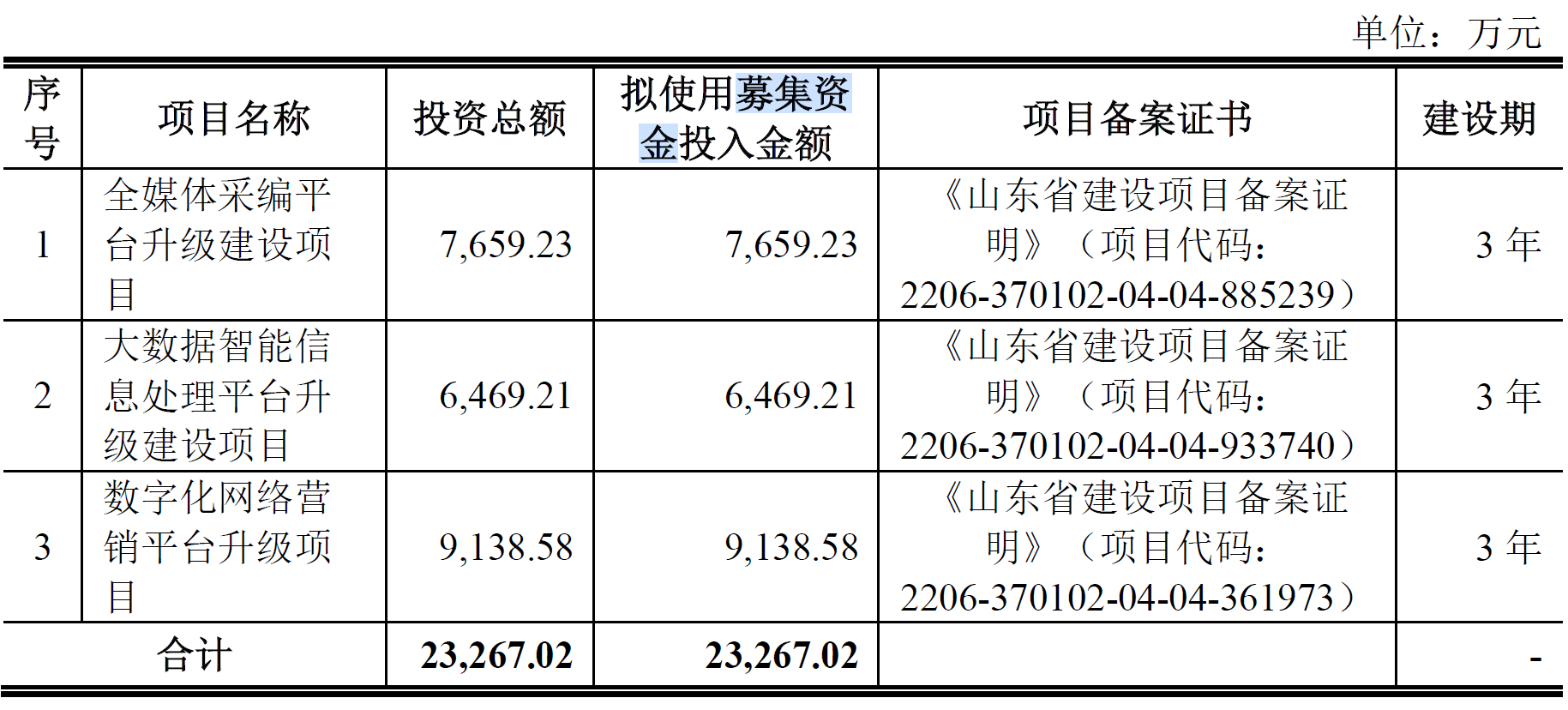 互联传媒原拟在深交所创业板公开发行股份数量不超过3,667万股,且占发行后总股本的比例不低于25%。公司原拟募集资金23,267.02万元,分别用于全媒体采编平台升级建设项目、大数据智能信息处理平台升级建设项目、数字化网络营销平台升级项目。
