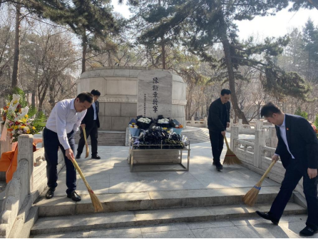 祭扫活动在雄壮的国歌声中开始。在庄严肃穆的济南革命烈士纪念群雕前,全体人员列队肃立,向革命烈士敬献花篮,大家怀着崇敬的心情,缅怀革命英烈,告慰烈士忠魂,寄托对烈士的无限哀思。敬献花篮后,大家三鞠躬,表达对革命先烈的崇高敬意。