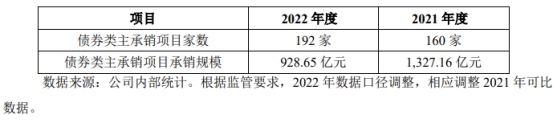 2022年,中泰证券共完成192家主承销债券项目,同比增长20%。受债券市场波动影响,全年总承销规模为928.65亿元,较上年有所降低。