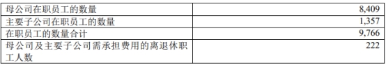 截至2022年末,中泰证券在职员工的数量合计为9,766人,其中,母公司在职员工的数量为8,409人,主要子公司在职员工的数量为1,357人。
