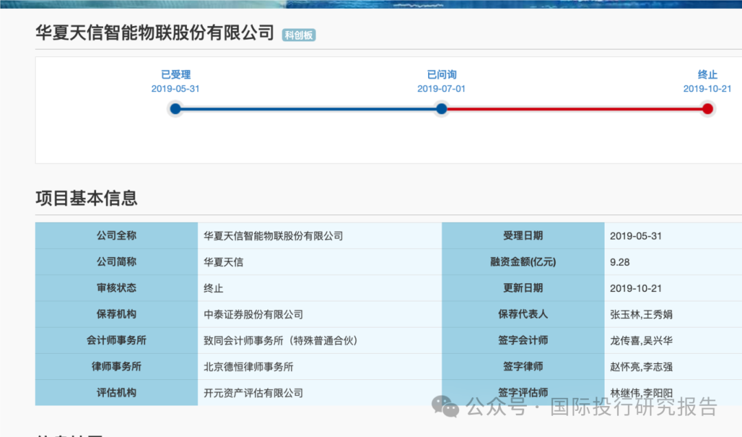4 、上交所网站显示,华夏天信2019 年申请在科创板 IPO,保荐人是本次被证监会查处的张玉林,而本次被查处的钟建春是项目协调人,而当时 IPO 文件的签署人正是毕玉国。