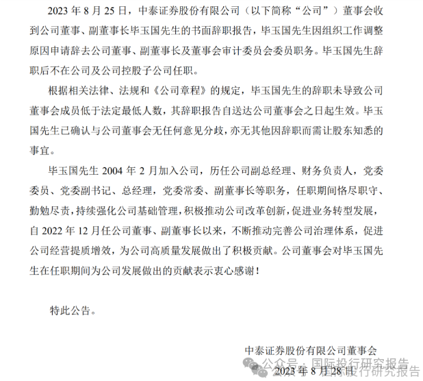 2 、毕玉国博士曾经获得获得“济南市金融系统十大杰出青年”称号,还是深交所 2020 年发布的第一届创业板股票发行规范委员会成员。2018 年和同伙张玉林等一起违规入股某公司,2023 年 12 月退股,而 2023 年 7 月 29 日,山东国资委任命毕玉国为山东华鲁控股集团董事,与此同时,2023 年 8 月 28 日,中泰证券才公告毕玉国辞职。