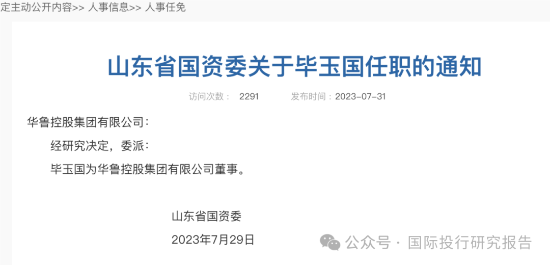 中泰证券毕玉国博士违规入股后续:现在是山东华鲁控股集团董事旗下三家上市公司