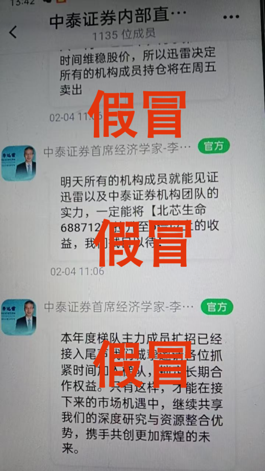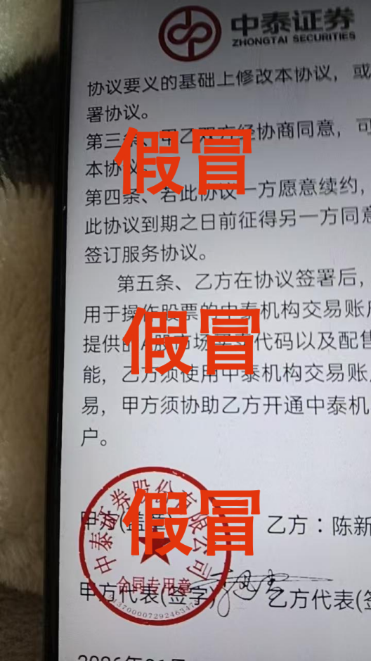 近期,发现有不法分子冒用中泰证券及其知名分析师、投资顾问等工作人员的姓名、证件照片、证券执业资格编号等信息,诱导投资者下载“中泰机构”“中泰直播频道”等APP,通过发布虚假投资信息、签署假冒协议、诱导投资者在假冒APP转入资金、虚构盈利、限制资金转出等方式实施诈骗。