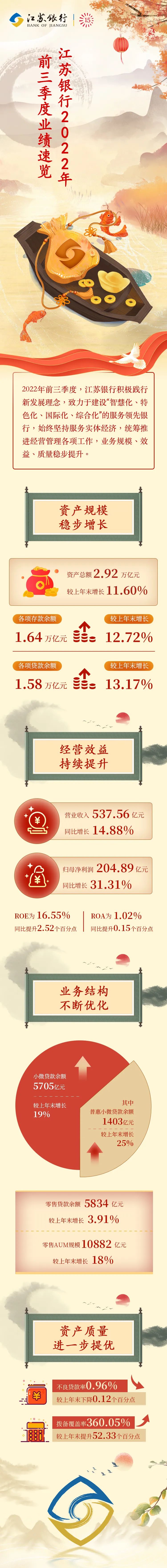 江苏银行2022年前三季度业绩速览