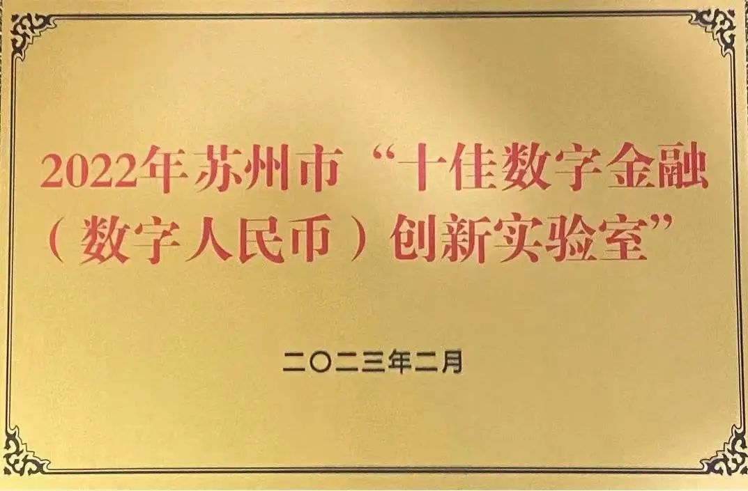 2月1日,在苏州市政府召开的数字人民币试点推进会暨年度总结会上,江苏银行智数研究院被授予“十佳数字金融(数字人民币)创新实验室”称号,苏州分行被评为数字人民币试点工作先进银行机构。