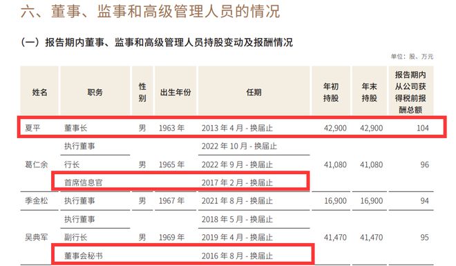首席信息官葛仁余,将于明年2月任职满7年,明年将届满59岁;
