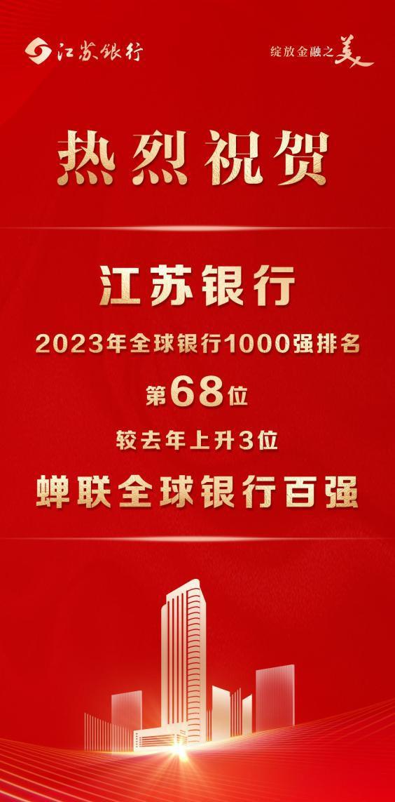 7月5日,国际权威财经媒体英国《银行家》杂志(The Banker)发布了“2023年全球银行1000强”榜单。江苏银行按一级资本排名第68位,较上年上升3位,在中资银行中排名第17位,较上年上升1位,继续保持良好发展态势,综合实力和市场竞争力持续增强。