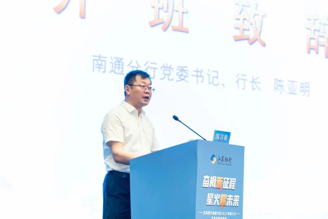 7月18日上午,南通片区2023年新入行大学生岗前培训开班仪式在通城举行。江苏银行培训中心资深经理宣亚南,南通分行党委书记、行长陈亚明,南通分行、常州分行及盐城分行人力资源部总经理室全体成员出席活动。