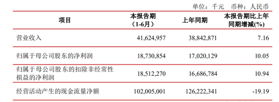 上半年,江苏银行实现营业收入416.25亿元,同比增长7.16%;归母净利润187.31亿元,同比增长10.05%。