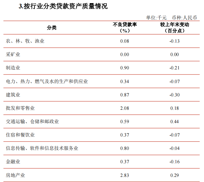 不良贷款率同样超过2%的还有批发和零售业,达到了2.08%,比上年末上浮0.18个百分点。