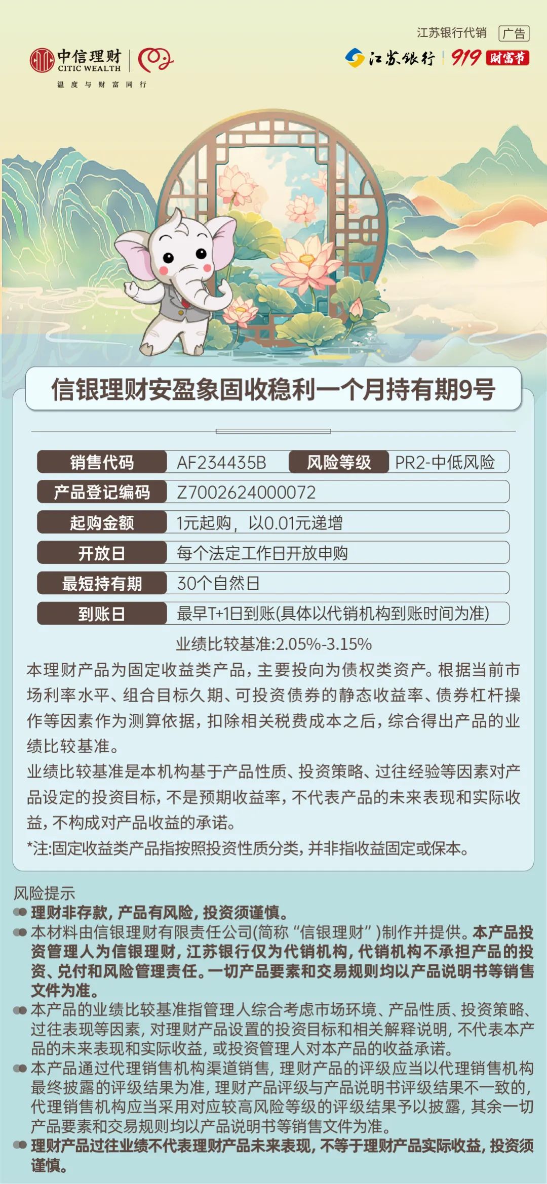 相伴已9,初心19 | 919财富节江苏银行代销多款信银理财持有期理财产品火热在售!