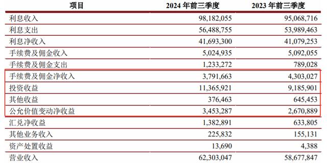 2024年前三季度,江苏银行实现利息净收入416.93亿元,同比仅微增1.49%;实现非息收入206.1亿元,同比增长17.11%。