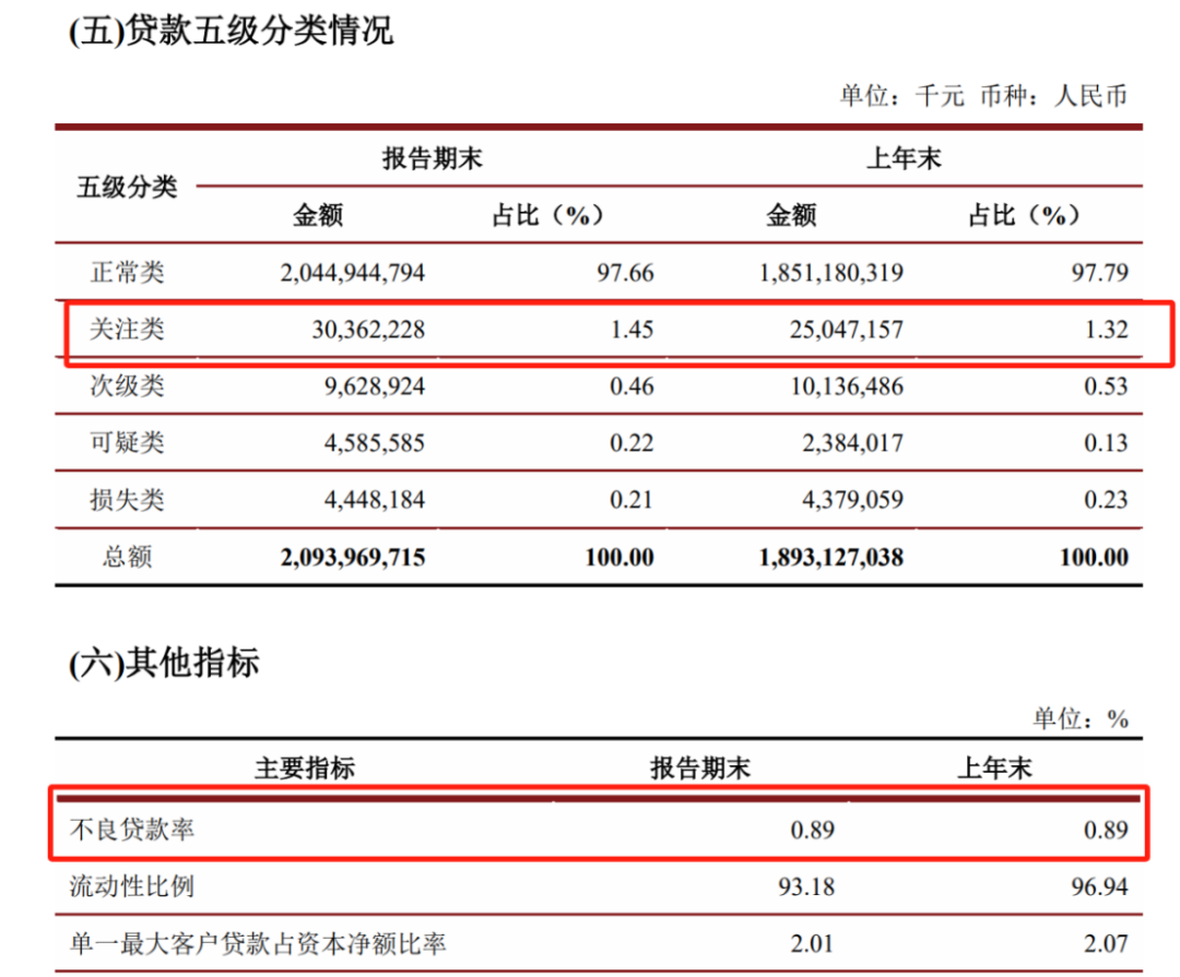 但同期该行关注类贷款余额约为303.62亿元,占比为1.45%,相比于2023年同期的1.30%,上升0.15个百分点,占比同比明显上升。
