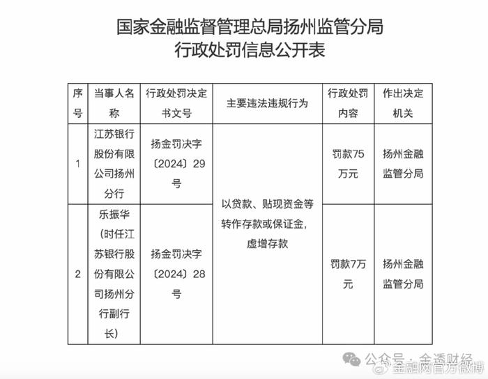 回顾过往罚单记录,数据触目惊心。2024 年 12 月 31 日,江苏银行扬州分行因以贷款、贴现资金等转作存款或保证金虚增存款,被罚款 75 万元,时任副行长一同被罚;2019 年 12 月 27 日,宿迁分行违规虚增存贷款规模、银团贷款承贷份额比例不合规等问题遭罚 85 万元;2020 年 12 月 31 日,徐州分行更是因信贷资金挪用、贷前调查失职以及虚增存款三项违规,吞下 130 万元罚单。统计显示,仅 2020 年、2021 年,江苏银行就被处罚 43 次,累计罚款金额近 2000 万。如此频繁且高额的处罚,绝非偶然,背后反映出的是内部管理的失控。