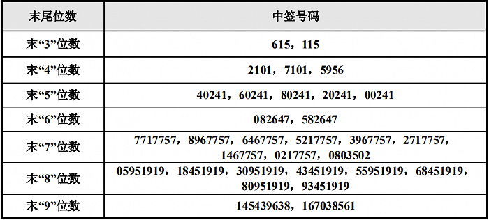 苏能股份:上交所主板IPO网上中签号码共有62万个