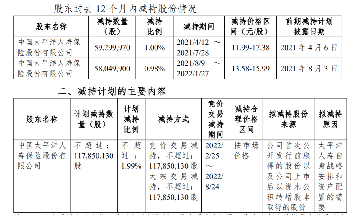 两大险企股东持续减持股权