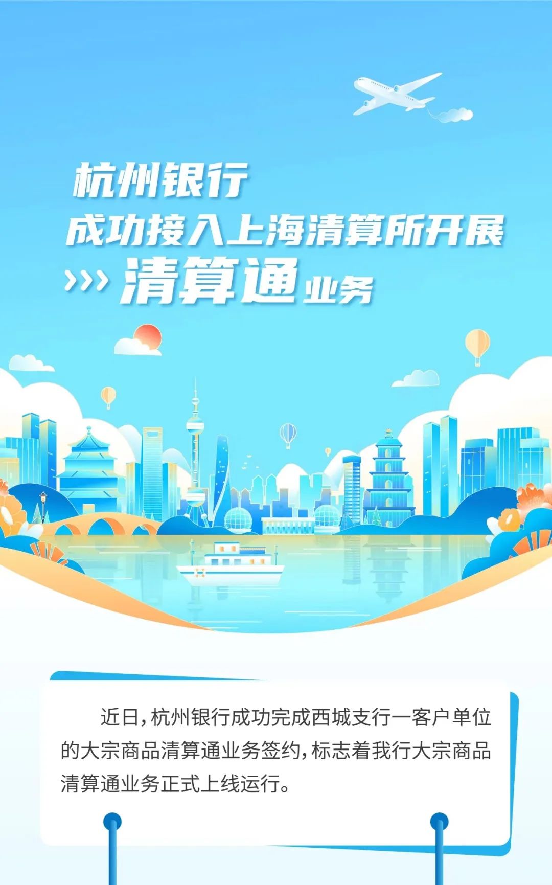 杭州银行成功接入上海清算所开展清算通业务!