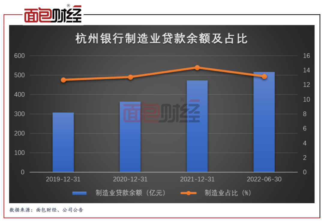 数据显示,截至2022年6月末,杭州银行的制造业贷款余额为516.16亿元,较上年末提升42.79亿元,增幅为9.04%。