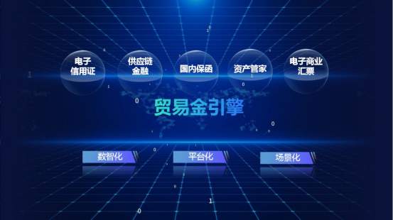 贸易金引擎面向实体经济企业、集团和细分行业客户,整合了企业日常经营活动及产业链条上的信息流、物流、商流和资金流,将传统和科技、线上和线下、标准化和场景化相结合。凭借完善的产品体系、服务体系和技术体系,致力于关注客户需求,为企业提供量身定制的贸易金融服务综合解决方案,帮助企业降低运营成本、提升融资效率,促进企业可持续发展。