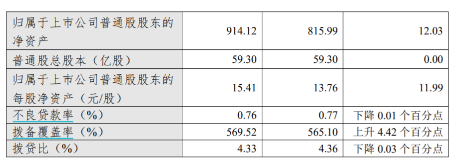 截至2023年9月末,杭州银行总资产17901.45亿元,较上年末增长10.74%;贷款总额7,852.26亿元,较上年末增长11.82%;总负债16,817.59亿元,较上年末增长10.79%;存款总额10,122.37亿元,较上年末增长9.07%。公司不良贷款率0.76%,较上年末下降0.01个百分点;拨备覆盖率569.52%,较上年末提高4.42个百分点。